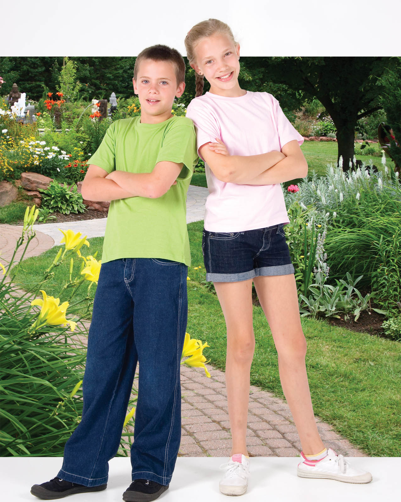 Side seamed, back yoke, preshrunk to minimise shrinkage